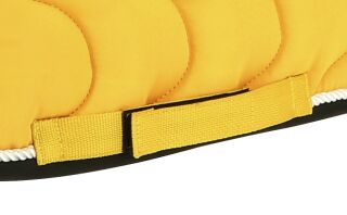 Schabracke aus 100% Baumwolle, 480g/m² Polyfill Polsterung mit einer 5,5 mm breiten Umrandungsflechte verziert.
