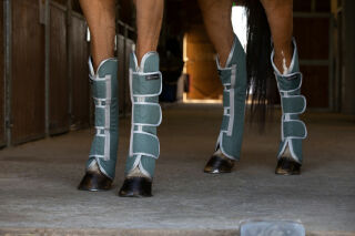 Aus wasserdichtem und atmungsaktivem 600 Denier Ripstop recyceltem Polyester. 12 mm dicke Schaumstoff-Polsterung und 450 g Futter aus synthetischem Lammfell. 3 breite Klettverschlüsse.