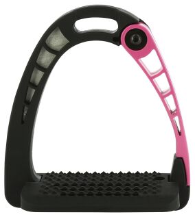 Das patentierte Modell lässt sich dank moderner Spritzgusstechnik seitlich öffnen. Die Herstellung erfolgt über ein Hightech-Verfahren, das Metall und Polyphenylensulfid verbindet. Der äußere Schenkel des Steigbügels lässt sich im Notfall nach außen klappen, was ein Herausziehen des Fußes erleichtert. Der Sicherheitsverschluss, der bei Druck den Bügel öffnet, befindet sich ca. 3 cm oberhalb des Tritts, um zu verhindern, dass der Fuß unbeabsichtigt seitlich aus dem Steigbügel rutscht oder Sand und Erde den Mechanismus blockieren.