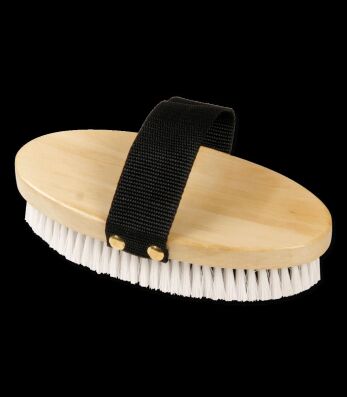 Mittelstarke Synthetikborsten in schwarz-weiß-Optik; in Naturholzrücken gefasst.