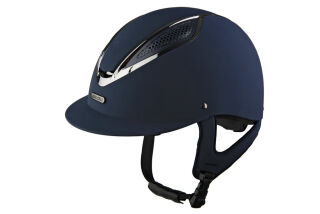 Eleganter und moderner Helm, leicht und sehr gut belüftet. Glänzender Einsatz in der Front für die Belüftung. ABS-Schale, EPS-Futter, komplett mit glattem PU-Velours überzogen, normaler Schirm. Einstellrad und herausnehmbares Innenfutter. CE-gekennzeichnet, entspricht der Norm EN 1384-2012, geändert durch das Koordinationsblatt VG1 01.040:2014-12. SGS FIMKO OY-Zertifizierung.
