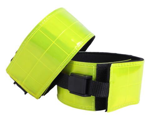 Set aus zwei reflektierenden Beinbändern mit Klett -und Clipverschluss.